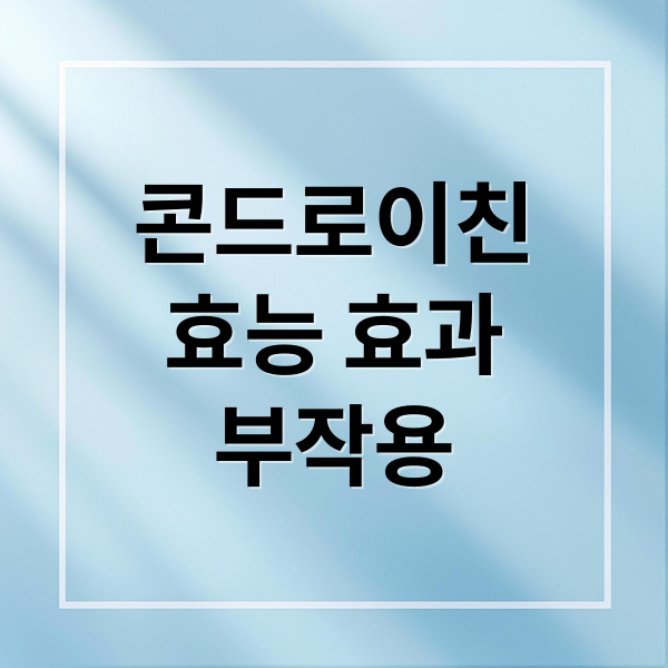 관절 건강, 콘드로이친 하나로 끝낼 수 있을까요? 효능부터 부작용, 선택 팁, 실제 후기까지 꼼꼼하게 알려드릴게요. 이 글 하나로 콘드로이친에 대한 모든 궁금증을 해결하고, 똑똑하게 관절 건강을 관리해 보세요!
